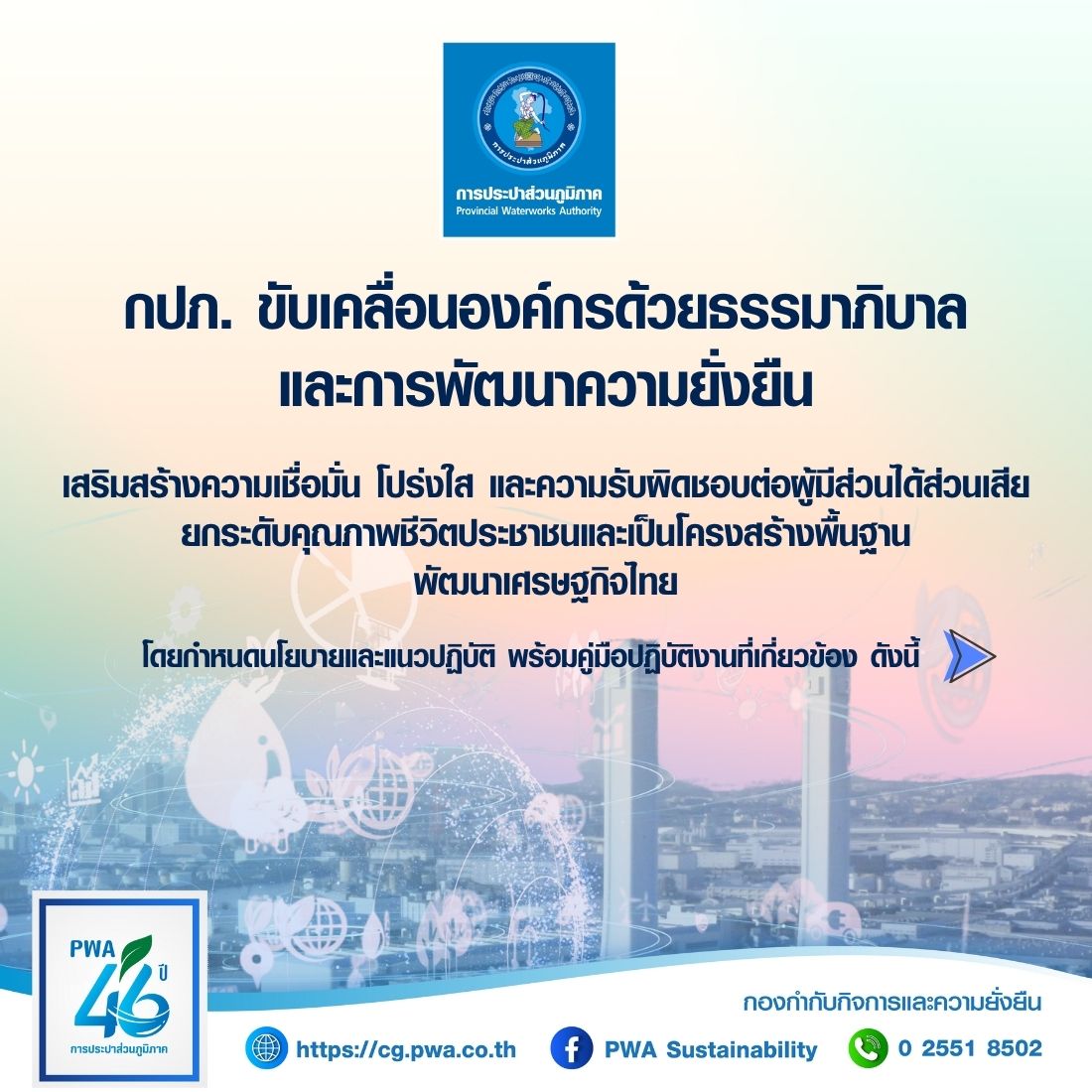 กปภ. ขับเคลื่อนองค์กรด้วยด้วยธรรมาภิบาลและการพัฒนาความยั่งยืน